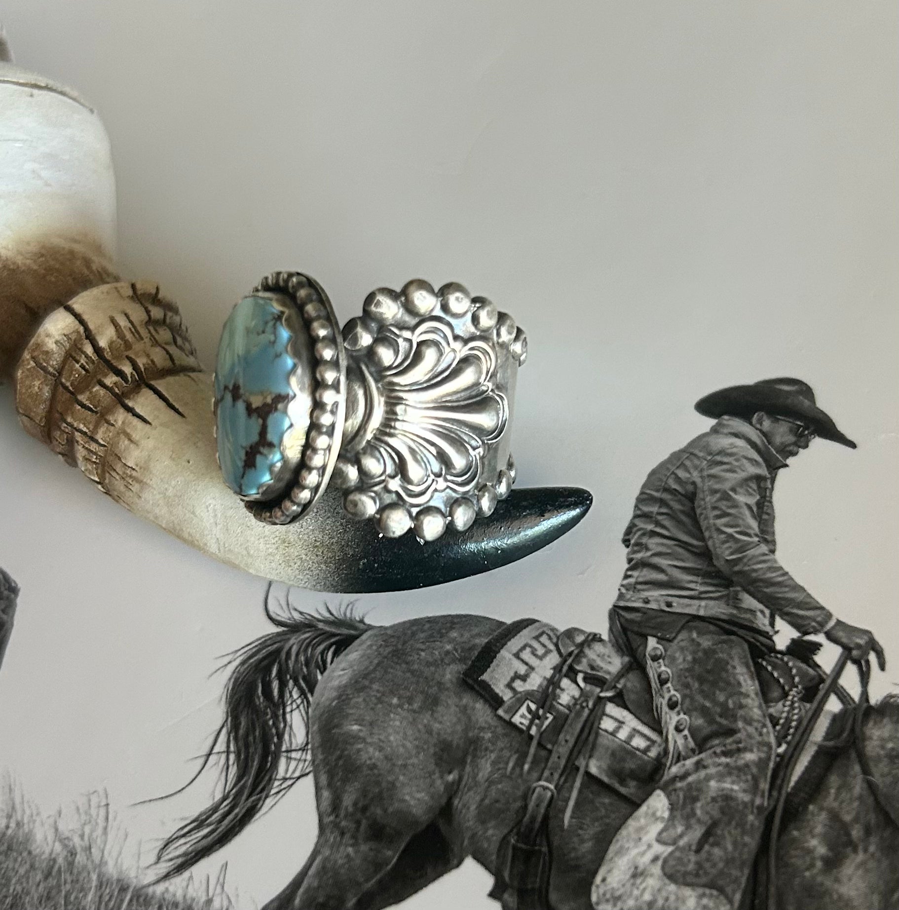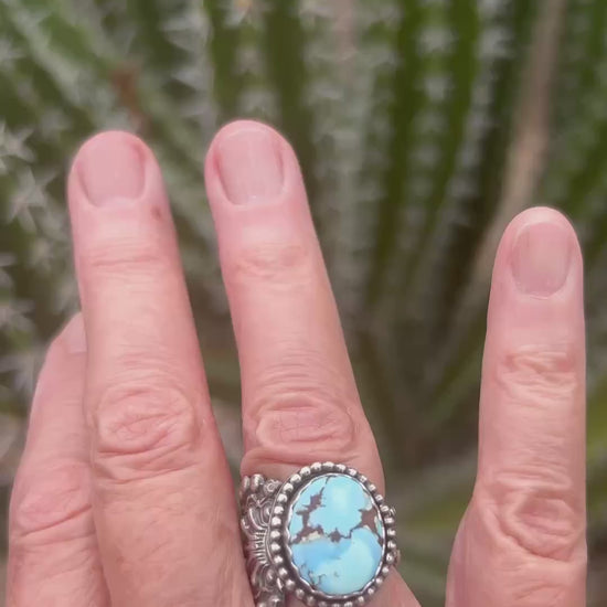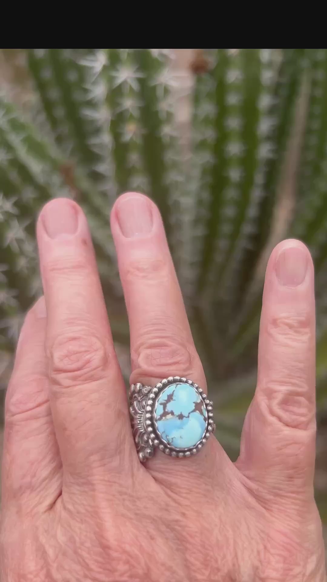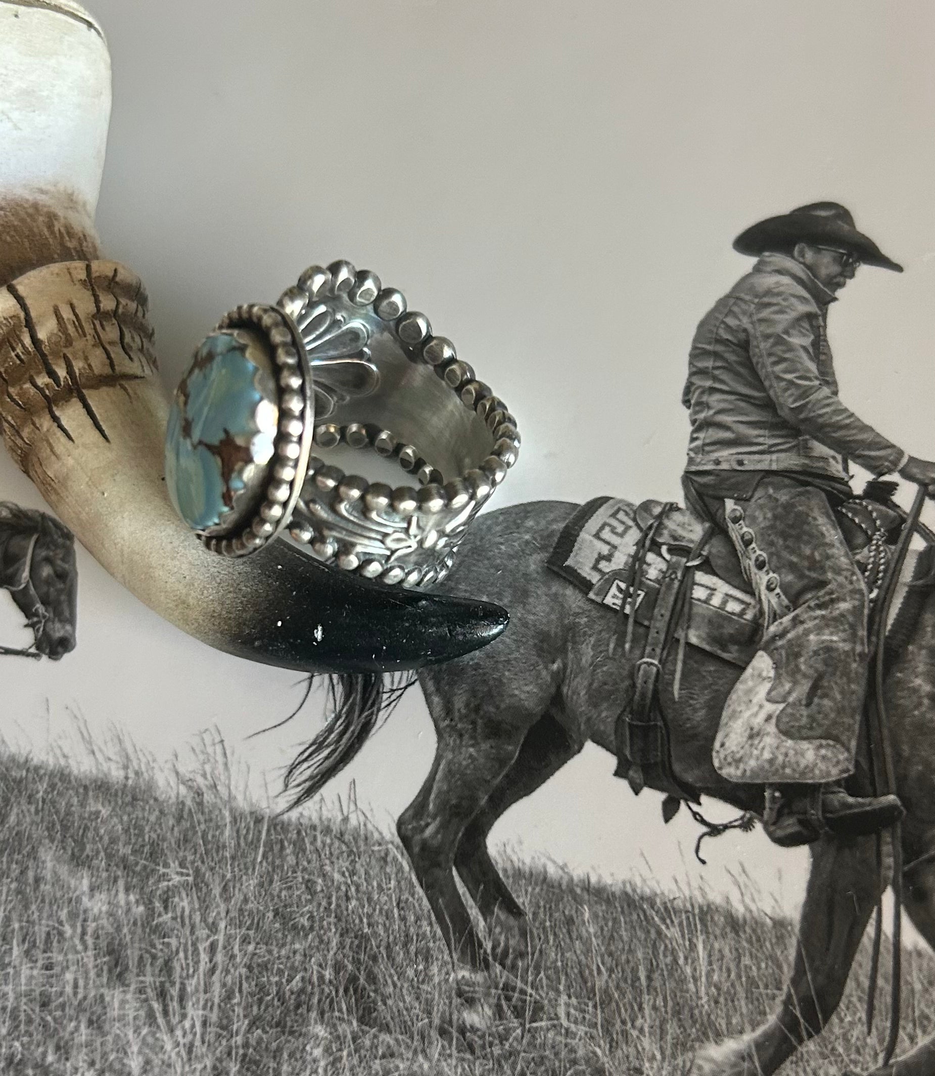 Gorgeous Golden Hill Ring set on a heavy sterling silver spoon handle. All set in fine sterling silver made by me. Size 8.